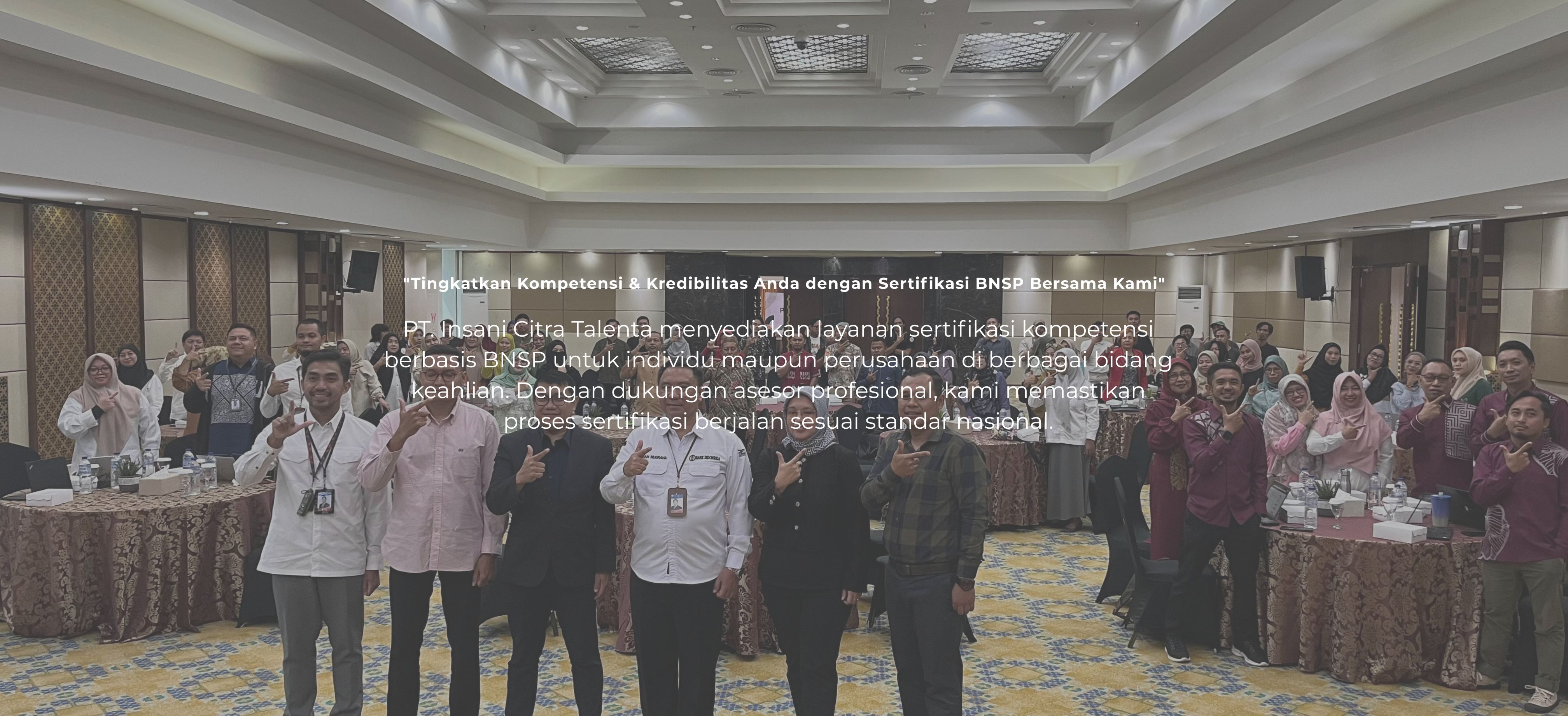 Kami hadir sebagai solusi bagi individu dan perusahaan untuk meningkatkan daya saing, produktivitas, serta kapabilitas sumber daya manusia secara terukur dan berstandar nasional. Dengan didukung oleh tim profesional dan jaringan mitra terpercaya, kami siap membantu proses pengembangan SDM, pelatihan kompetensi, hingga pendampingan bisnis melalui layanan konsultasi dan sertifikasi yang tepat sasaran. Dari sertifikasi keahlian, penguatan personal skill, hingga program pengukuran dan pengembangan potensi SDM, kami berkomitmen menjadi mitra strategis bagi pertumbuhan Anda.